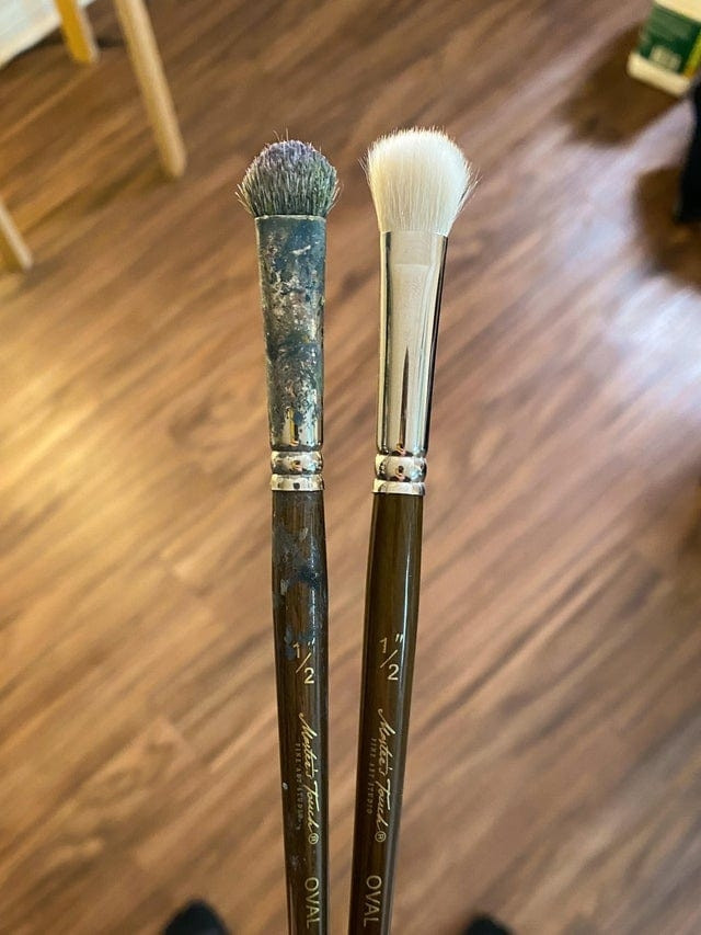 Вот перчатки: одна — новая, вторая — с натянутыми швами и потёртыми пальцами. Или нож, который когда-то был широким и острым, а теперь — тонкая полоска стали, зато «сам режет».